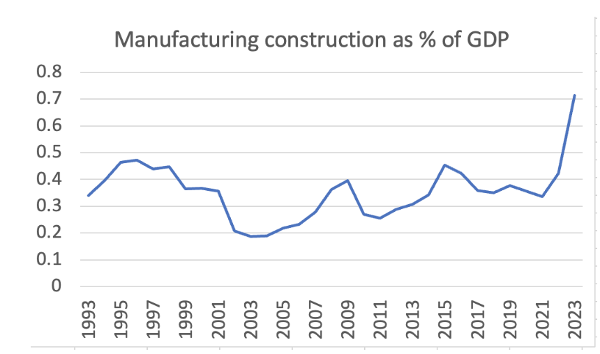 - The numbers are stunning. Here’s an annotated chart of manufacturing construction spending: