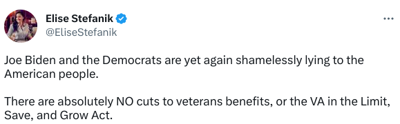 SHOT: MAGA Republicans, including Elise Stefanik, are trying to paper over their vote to make deep spending cuts, including to the Veterans Administration and other programs.