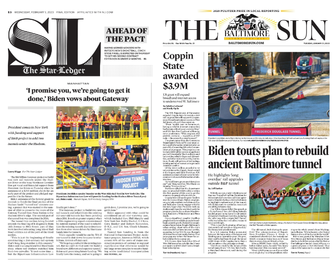 In Maryland: Baltimore Sun: At ancient Baltimore tunnel that often delayed his travel, Biden touts ‘long overdue’ rail upgrades