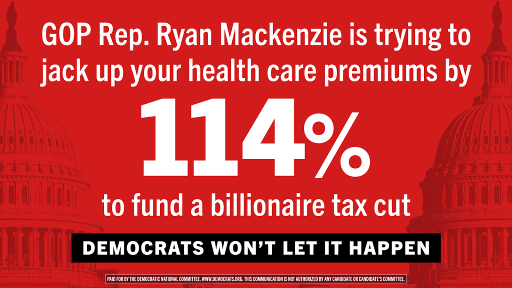Today, the DNC is launching an ad campaign targeting vulnerable Republicans in Texas, Pennsylvania, New Jersey, Virginia, and Michigan to hold Republicans accountable for trying to jack up health care costs in order to give massive tax handouts to the ultra-wealthy.